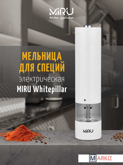 Электрическая мельница для специй **MIRU BLACKCOAL KA035 (ЧЁРНАЯ) или MIRU WHITEPILLAR KA036 (БЕЛАЯ)** станет незаменимым помощник для каждой хозяйки. Мельница электрическая для специй и приправ - электромельница для соли и перца - с подсветкой. Она способна с высокой эффективностью перемалывать соль, перец или набор специй. Для работы устройства необходимо вставить 4хAA батарейки (в комплект не входят), наполнить колбу специями и нажать кнопку включения. Устройство перемелет необходимое количество пряностей. Принцип работы основан на взаимодействии двух керамических жерновов, представляющих собой два круга, один из которых закреплён неподвижно, а другой под воздействием электричества приходит в движение, перемалывая специи. Керамика ценна тем, что она никак не влияет на вкус специй, в отличие от других материалов, способных оставить лёгкий привкус. Особенности:- Керамические жернова.- Регулировка тонкости помола.- Объём 75 мл.- LED-подсветка.- Питание от 4хAA батареек (в комплект не входит).- Удобная кнопка включения.