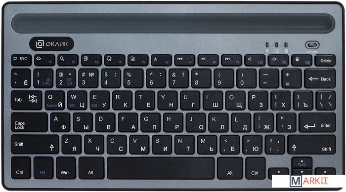 Компактная клавиатура Slim-дизайна. Беспрводное подключение по радиоканалам Bluetooth V5.0 и 2,4 Ггц. Совместима с ОС: Windows, iOS и Android.
