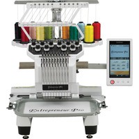 Вышивальная машина PR-1000e предлагает 10 игл, очень большую область для вышивания, видеокамеру для позиционирования и сенсорный дисплей, позволяющих редактировать и просматривать рисунки.